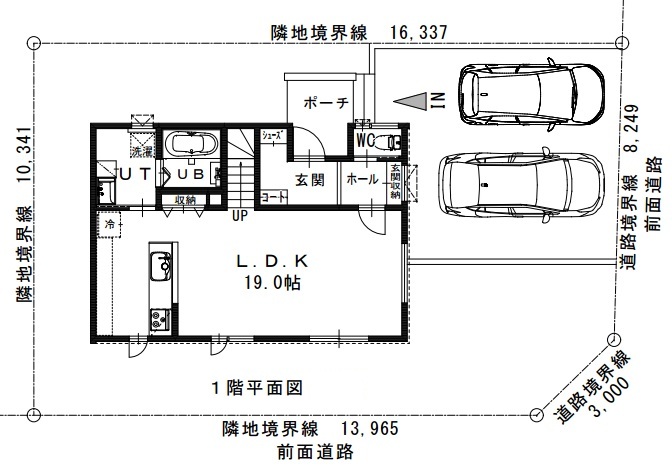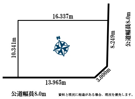東側幅員8.0m公道に間口8.2m接道、南側幅員8.0m公道に間口13.9m接道 -